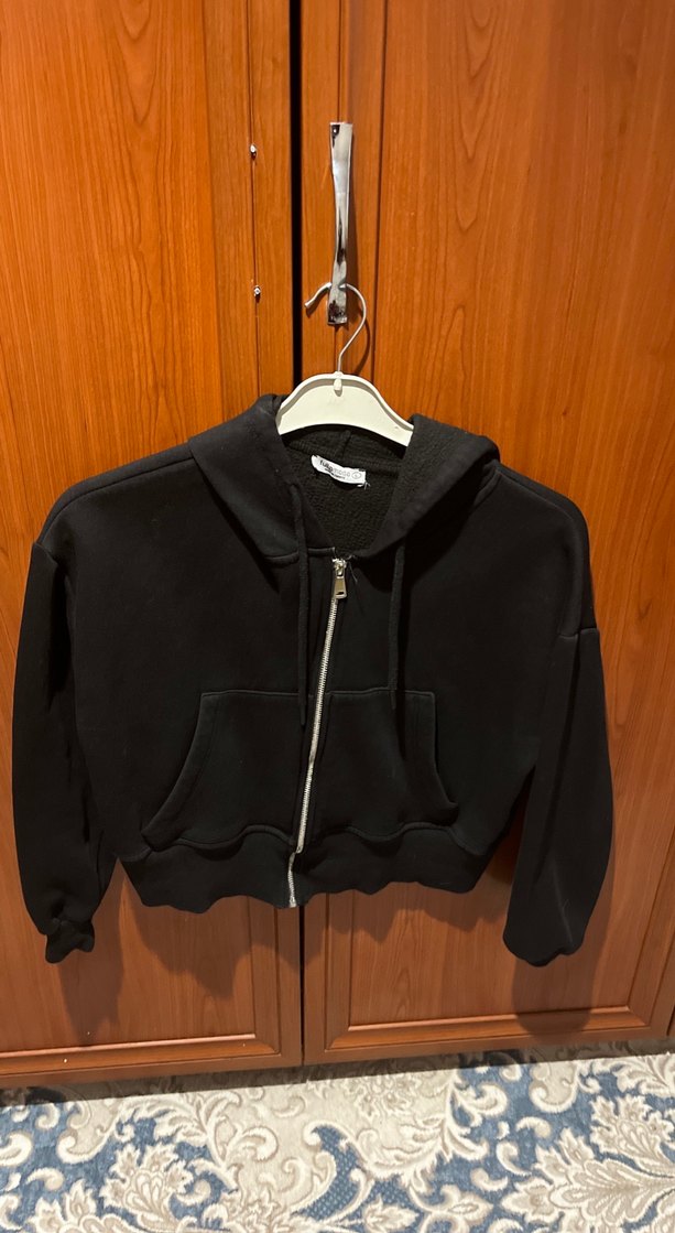 Kadın Siyah Fermuarlı Kısa Sweatshirt