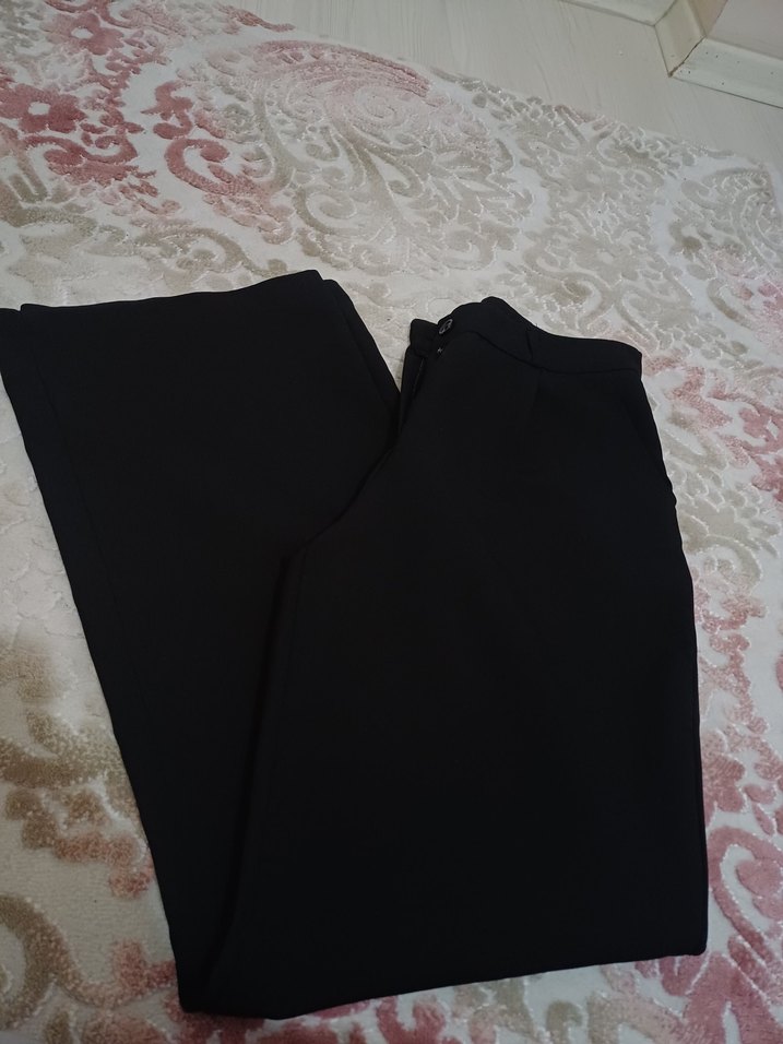 Fermuarlı detaylı, normal boy midi kesim, siyah kumaş pantolon. Ofis ve günlük sokak stiline uygundur. Az kullanıldı, temizdir.