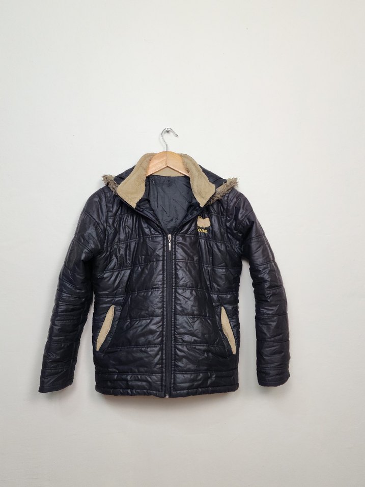 Fermuarlı, kolsuz, bisiklet yaka kadın ceketi, koyu renk sentetik kumaştan ve midi boyda, sokak stili için uygundur.