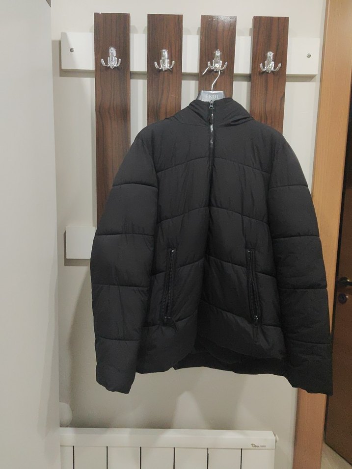Kadın siyah kış ceketi, fermuarlı cepler ve ön kapama ile midi boyda, uzun kollu ve notched lapel yakalıdır. Yumuşak ve sıcak kumaştan üretilmiştir.