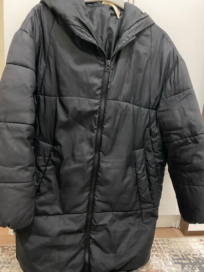 Kadın Siyah Fermuarlı Midi Kışlık mont