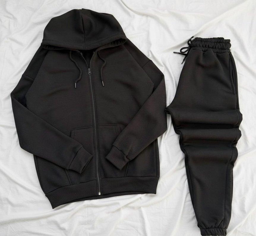Kadın Siyah Fermuarlı Salaş Eşofman Takımı