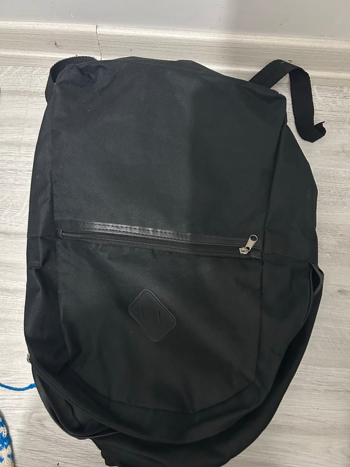 Kadınlar için fermuarlı, sentetik kumaştan yapılmış siyah sırt çantası. Minimalist ve sokak stili, dış mekan kullanımı için uygun.