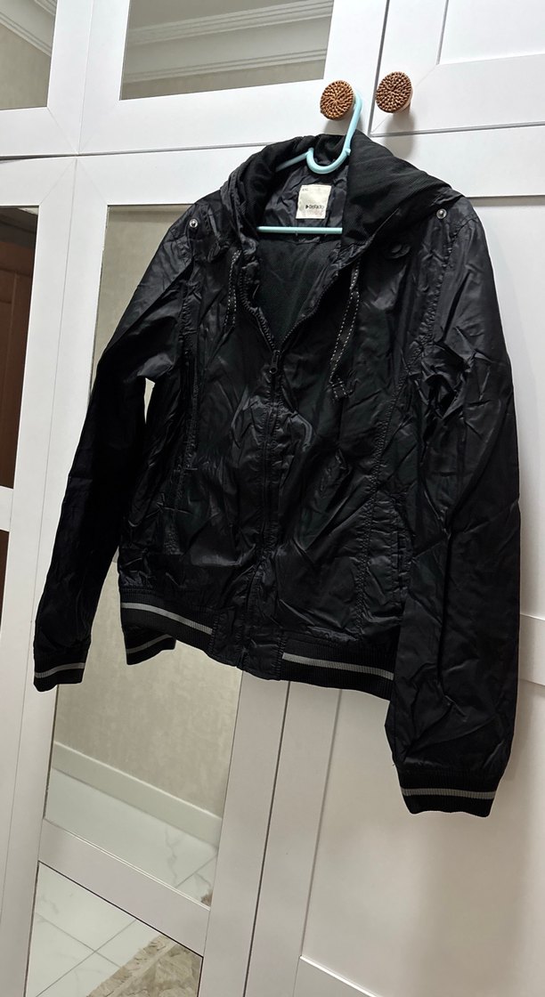 Fermuarlı, yüksek yakalı ve uzun kollu, sentetik kumaştan yapılmış, dar kesim siyah ceket, gündelik sokak stili için uygundur.