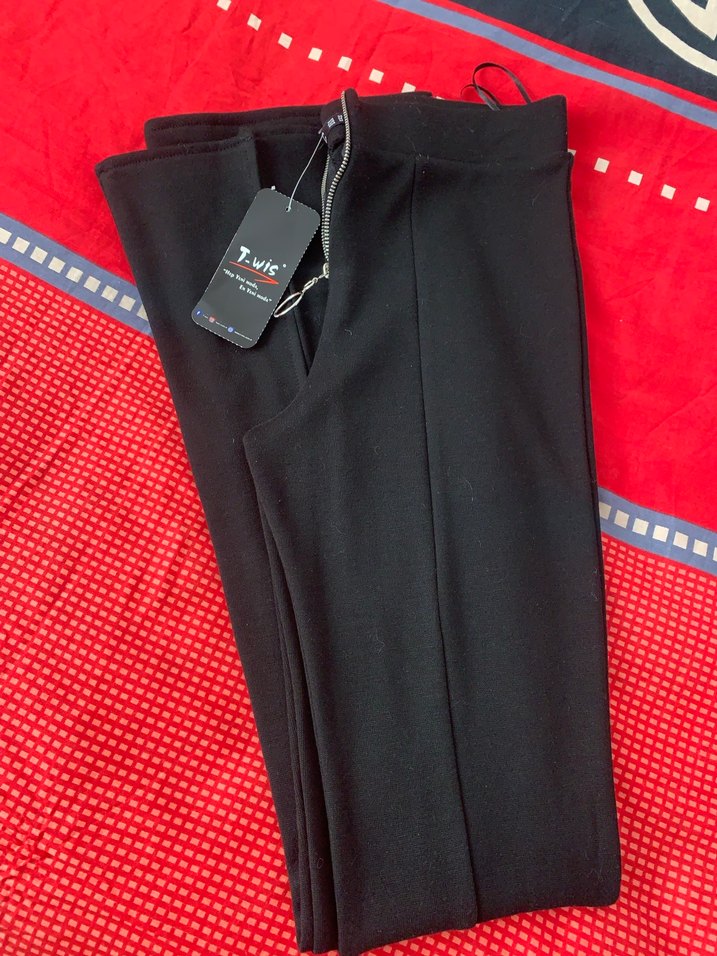 Kadınlar için regular fit, fermuarlı siyah kumaş pantolon. Sentetik kumaştan, spor ve athleisure tarzına uygun.