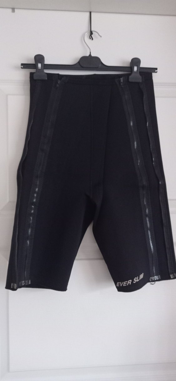 Kadınlar için fermuarlı detaylara sahip, ayarlanabilir termal kumaştan üretilmiş siyah spor şort. Spor esnasında ilgili bölgenin terlemesini sağlar. Kilo vermeye çalışanlar için uygundur. Ayarlanabilir özelliğe sahip olması nedeniyle kilo verdikce bir küçük bedene geçip kullanmaya devam edilebilmektedir.