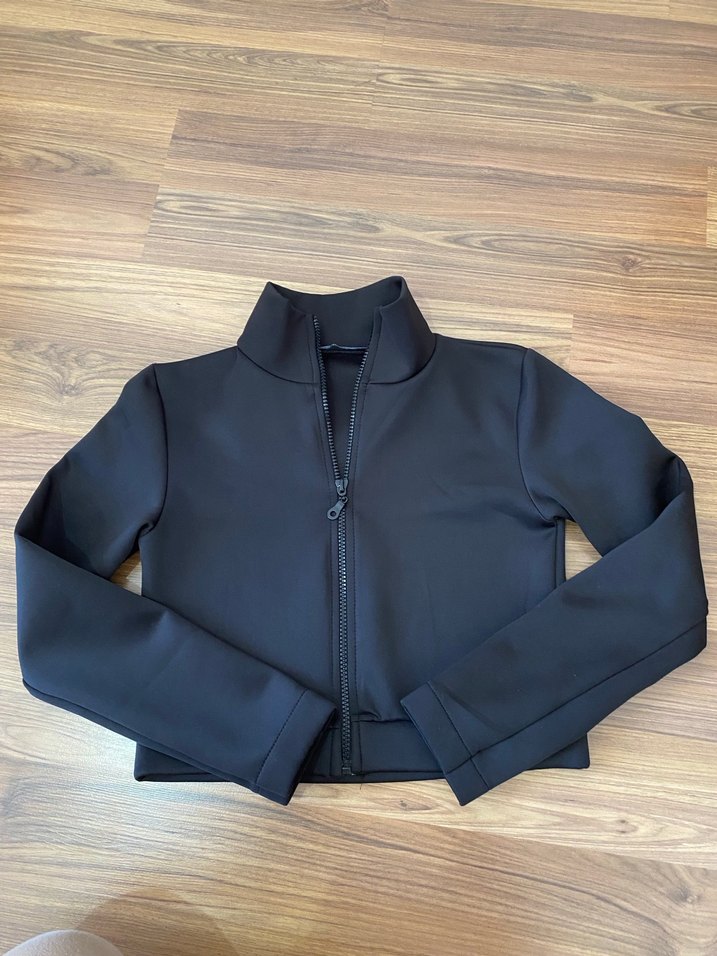 Fermuarlı önü, yüksek yakası ve uzun kollu, siyah renkli bu dar kesim ceket, yumuşak ve sıcak kumaştan yapılmıştır. Günlük kullanıma uygundur.