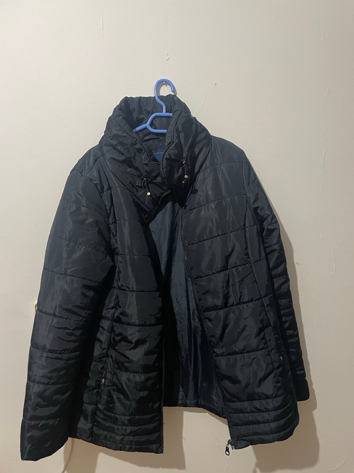 Siyah renkte, yüksek yakalı ve fermuarlı, normal midi uzunlukta, minimalist tarzda, kadına özel sokak giyimi montu. Yumuşak ve sıcak kumaştan yapılmıştır.