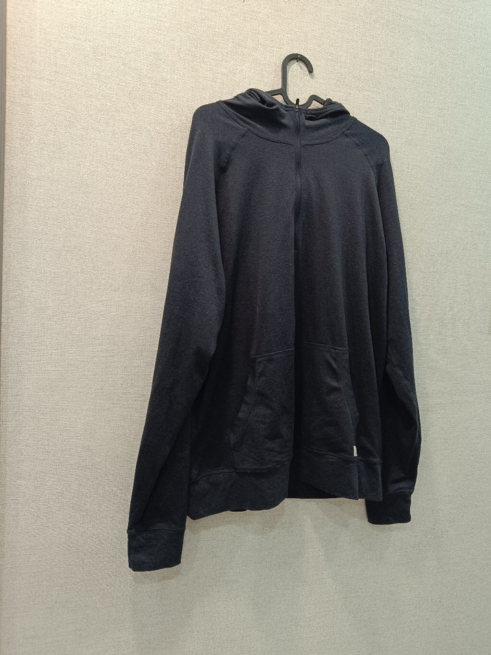 Uzun kollu, yüksek yakalı siyah polar, fermuarlı ve bol kesim ile rahat sokak stili için uygundur. sadece alt kısmında kullanıma engel olmayan ip çıkıntısı var . Görselde mevcuttur