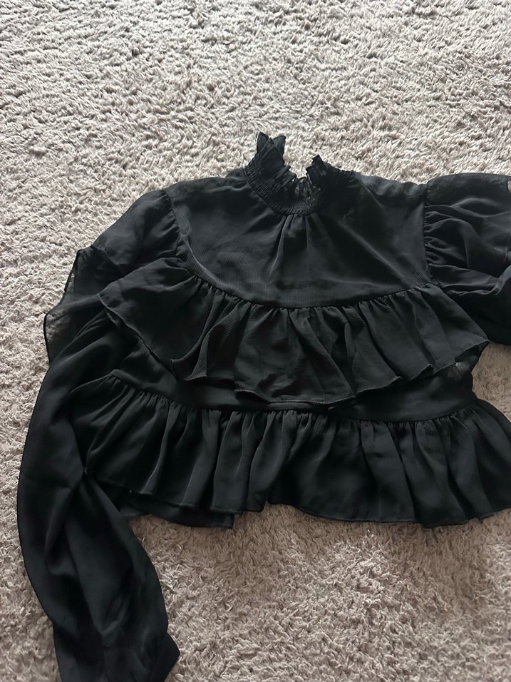 Kadın Siyah Fırfırlı Uzun Kollu Bluz tül