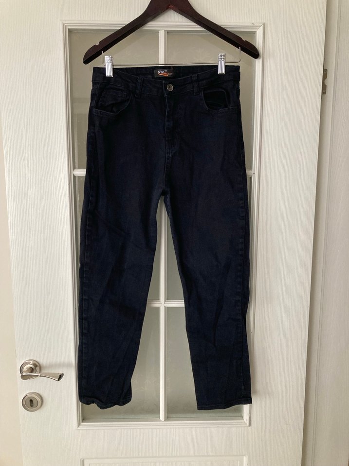 Kadınlar için siyah gabardin pantolon, mom model. Kemerli ve günlük kullanıma uygun sade, rahat stil sunar.