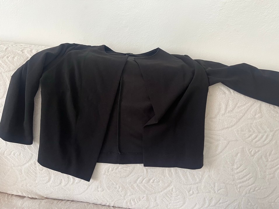 Siyah renkte, yuvarlak yaka ve ges kollu, salaş ve drapeli kesime sahip ceket . İpeksi dokusu ve minimalist goth tarzıyla günlük kullanıma uygundur.