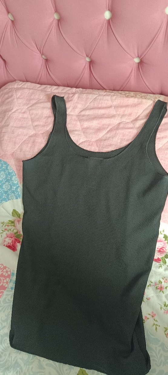 Kadınlar için askısız, kolsuz, vücuda oturan siyah midi uzunluğunda atlet. Düz ve desensiz yapıya sahiptir.