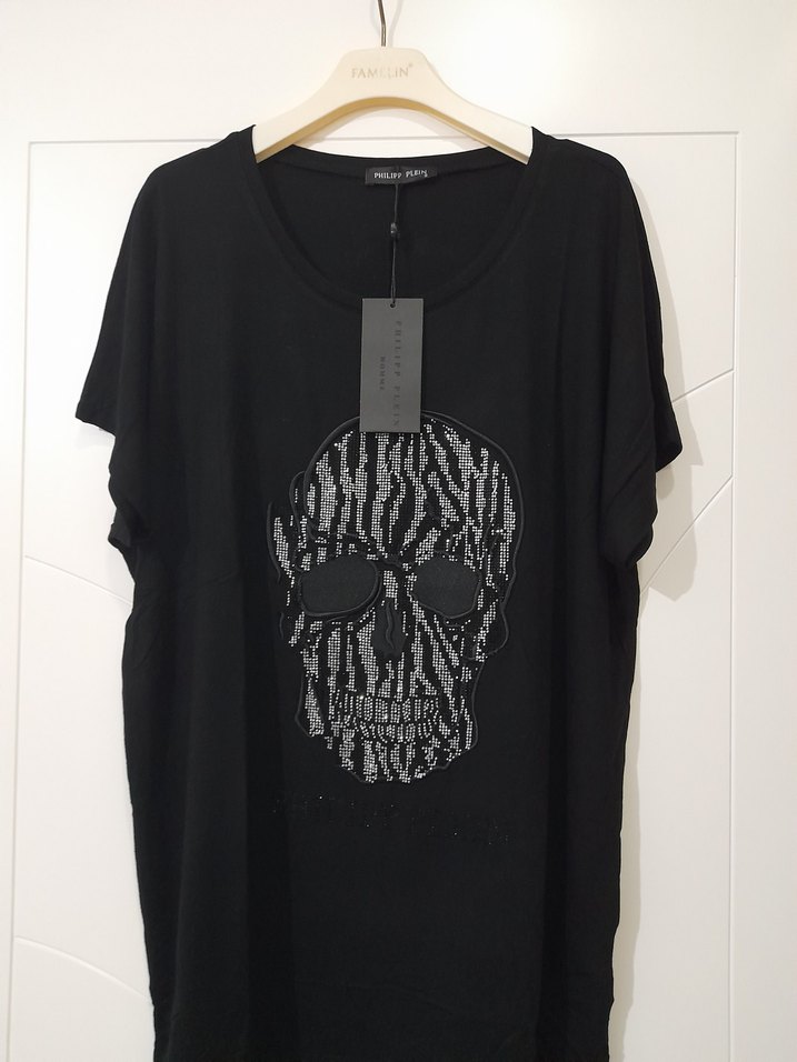 Kadın siyah, kısa kollu, bol kesim tişört. Önünde gotik tarzda baskılı kafatası deseni ve yuvarlak yaka bulunur. likralı pamuklu kumaştan üretilmiştir. ☠️ not geniş beden s yani 44bedene uygun
