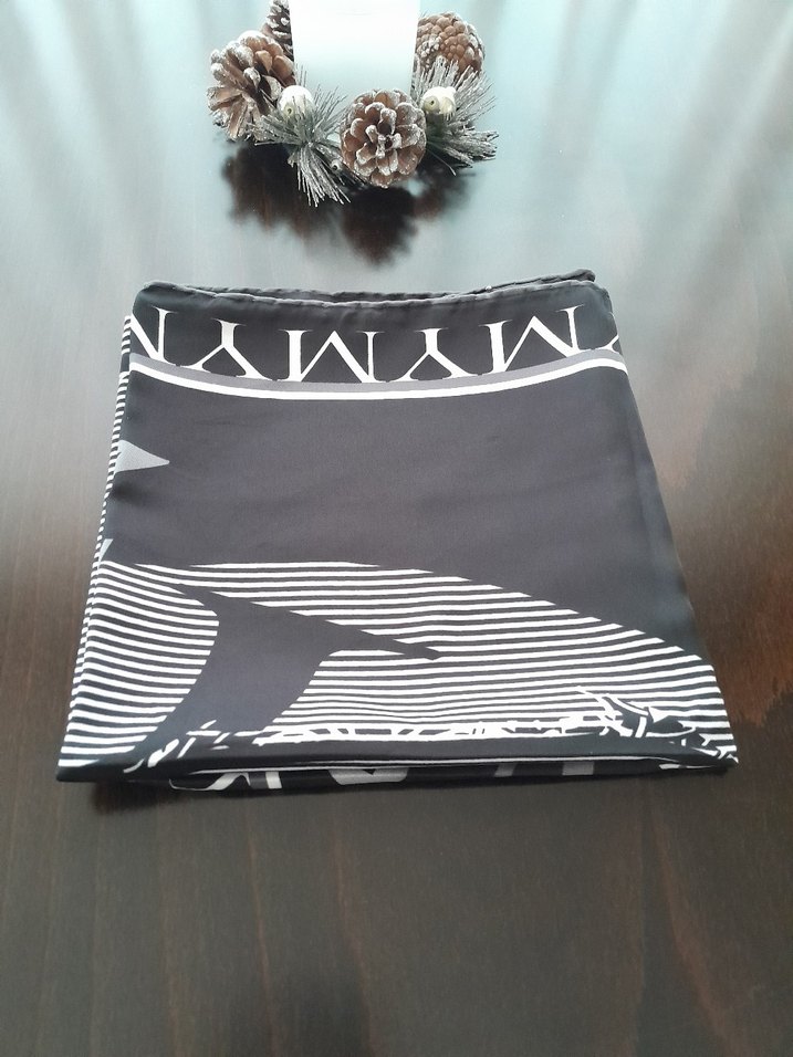 KADIN SİYAH GRİ DESENLİ SATEN EŞARP Not: Mağazamın ürünüdür devamı sayfamda mevcuttur