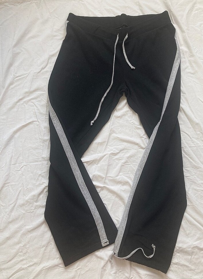 Kadınlar için siyah, gri fermuarlı detaylara sahip bol kesim sweatpant. Yumuşak kumaştan, bağcıklı bel ve ayarlanabilir fermuarlı paçalar içerir. Günlük sokak stili için uygun.