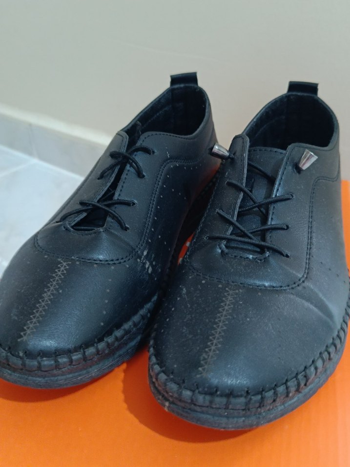 ürün suni deridir, sayılı giyildi,ufak bir yerinde deforme var görselini ekledim, bağcık yerindeki gri ucu kayboldu onu dışında sağlam