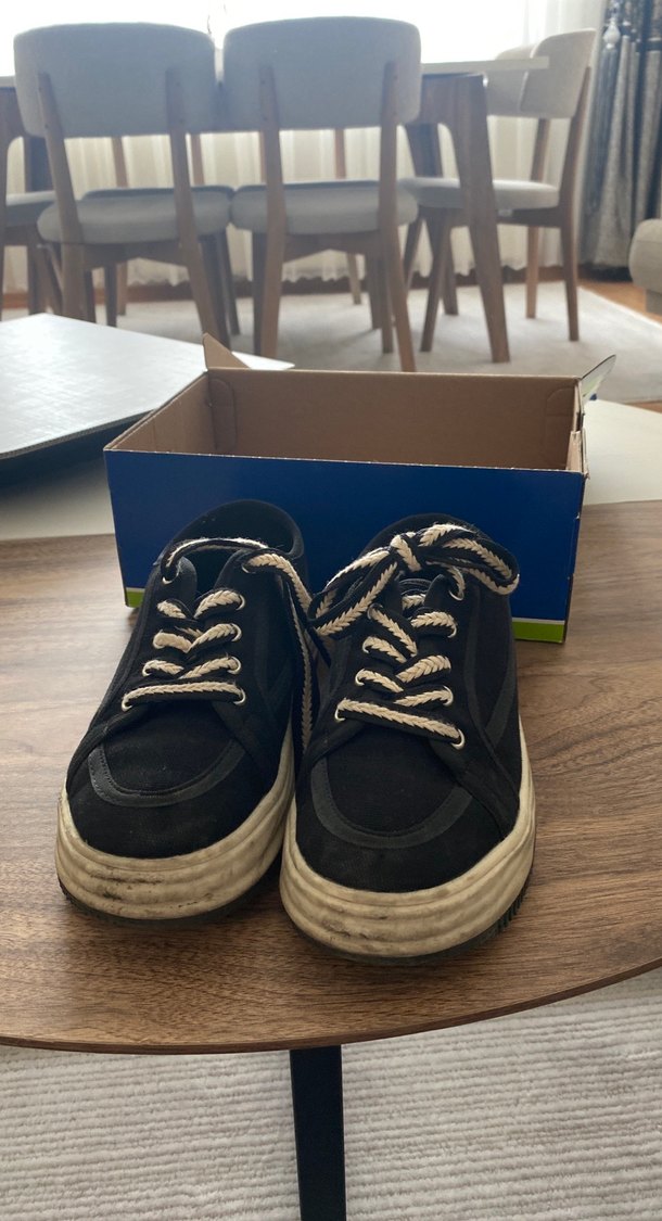 Kadınlar için siyah, düz tabanlı kauçuk spor ayakkabılar. Desensiz ve şık tasarımıyla spor ve günlük kullanıma uygundur.