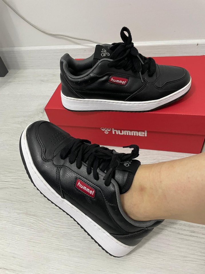 Siyah Hummel bağcıklı spor ayakkabılar, ince stilettolu topuk ve kauçuk taban ile trendy sokak stili ve spor için uygundur.