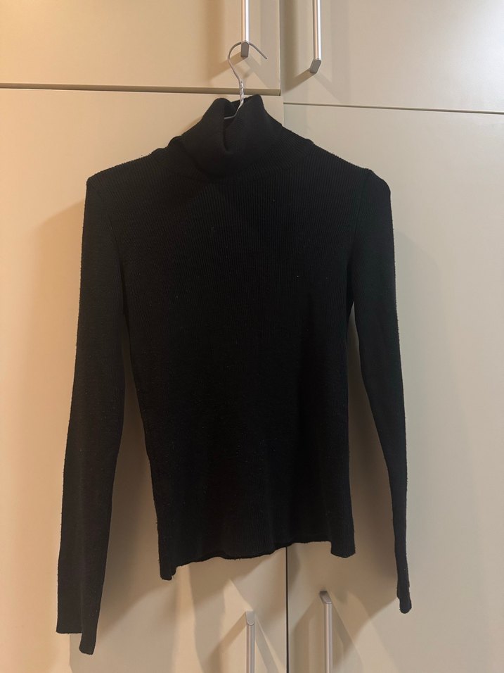 Boğazlı, uzun kollu, siyah ve vücuda oturan kazak. Yumuşak ve sıcak bir kumaştan yapılmıştır. Minimalist tarzda, günlük sokak giyimine uygundur. Hasarsızdır. (öğrenciden satılıktır)