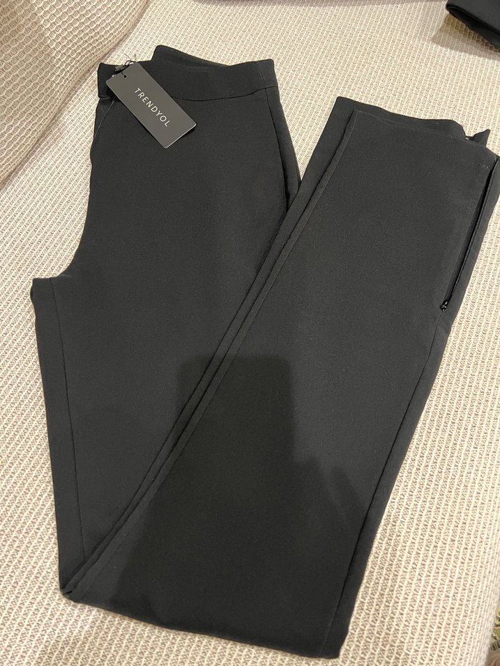 Siyah kumaş pantolon İspanyol paça model paçasından açılır kapanır fermuar mevcut etiketi üstünde 36 beden