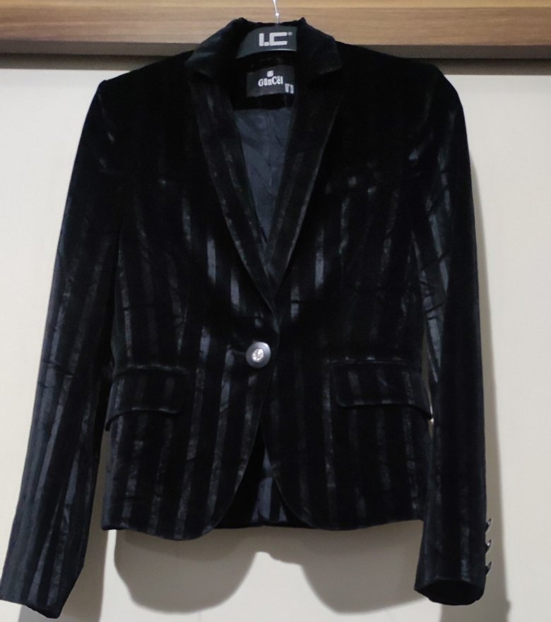 Kadın Siyah kadife Düğmeli Blazer Ceket