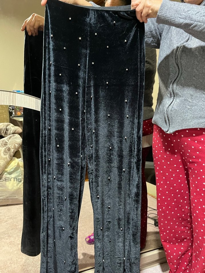 Kadın Siyah kadife Kumaş Pantolon boncuklu
