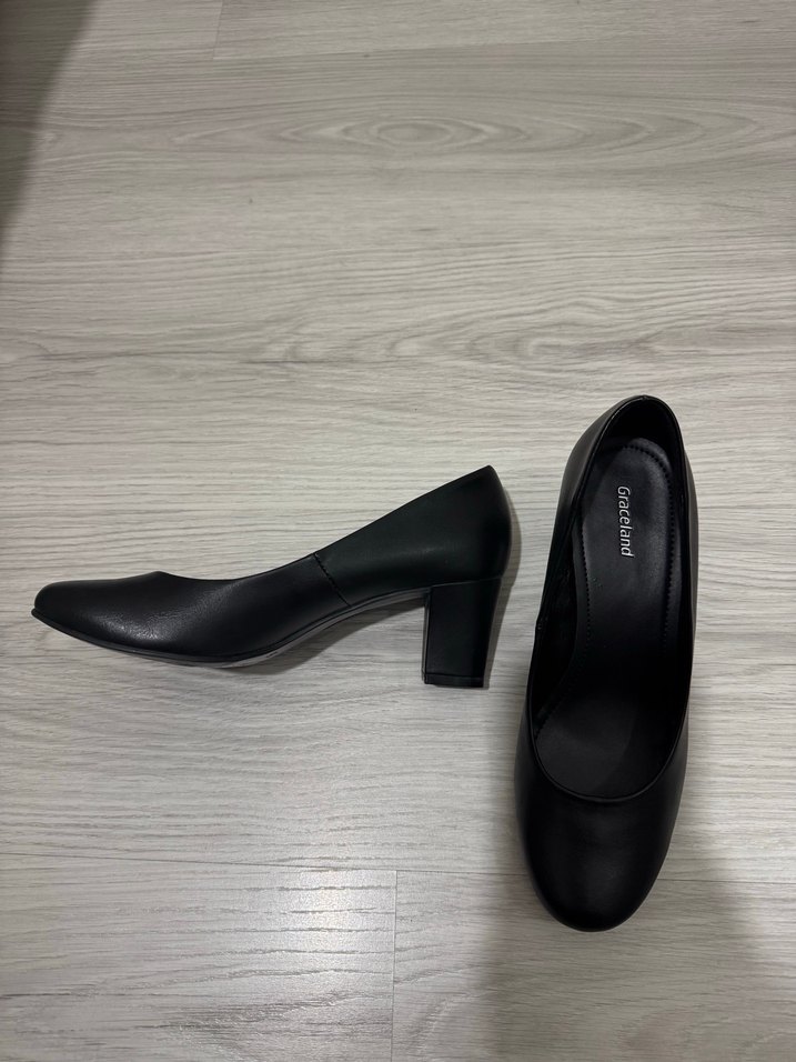Siyah renkli, lastik malzemeden yapılmış kadın topuklu stiletto. Minimalist ve normcore tarzıyla ofis kullanımı için uygun, zahmetsiz şıklık sunar.