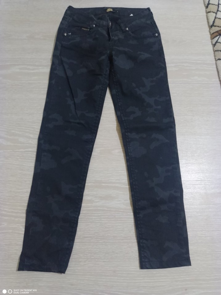 Kadın Siyah Kamuflaj Denim Pantolon