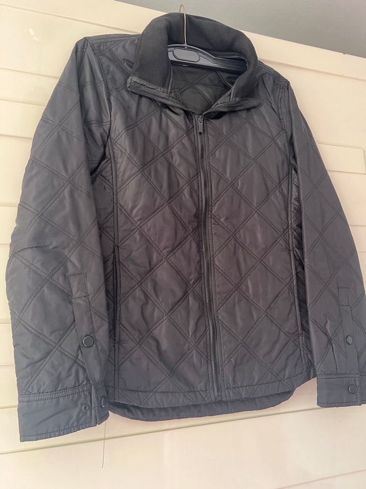 Fermuarlı, kapitone desenli siyah kadın biker ceketi, uzun kollu ve normal uzunlukta, şık ve rahat bir görünüm sunar. Ensesinde ki fermuarlı bölümde şapkası mevcuttur
