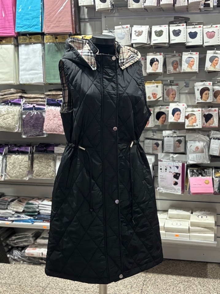 Kışlık Modelimiz Yeni sezon BURBERRY YELEK Bedenler 42,44,46,48,50,52 Siyah kapitone desenli, uzun ve kolsuz kadın yeleği kapüşonlu. Günlük rahat stil için uygundur.