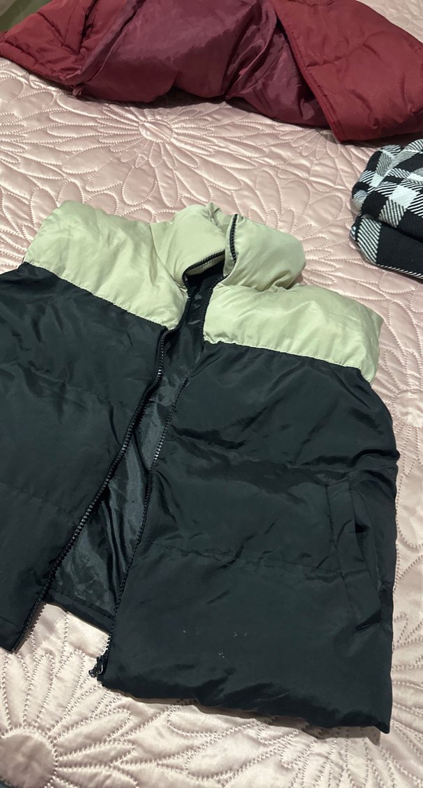 Bu kadın kapitone yelek, yüksek yakalı ve fermuarlı ön kısmı ile siyah ve bej renklerde yumuşak polar kumaştan üretilmiştir. Normal midi boyda ve kolsuzdur, günlük kullanım ve sokak modası için uygundur.