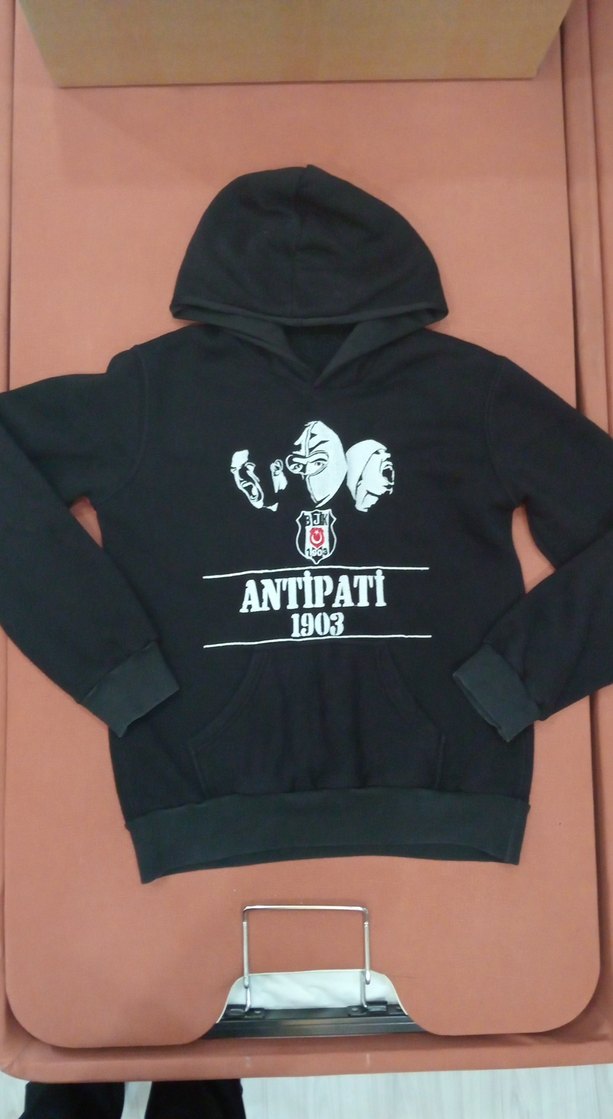 Siyah kapüşonlu, baskılı ve örgü dokulu, uzun kollu, normal boyda, dar kesim kadın sweatshirtü. Spor ve sokak stiline uygun.
