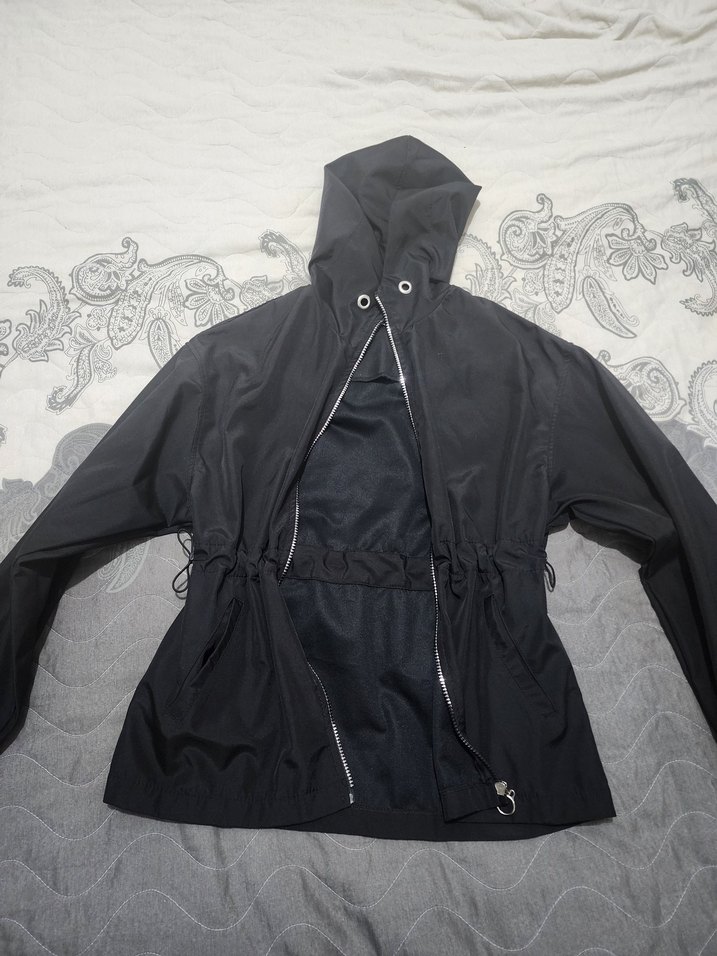 Kadınlar için siyah kapüşonlu fermuarlı ceket. Yüksek yakalı, uzun kollu, midi boy ve bol kesimdir. Günlük sokak stiline uygundur.