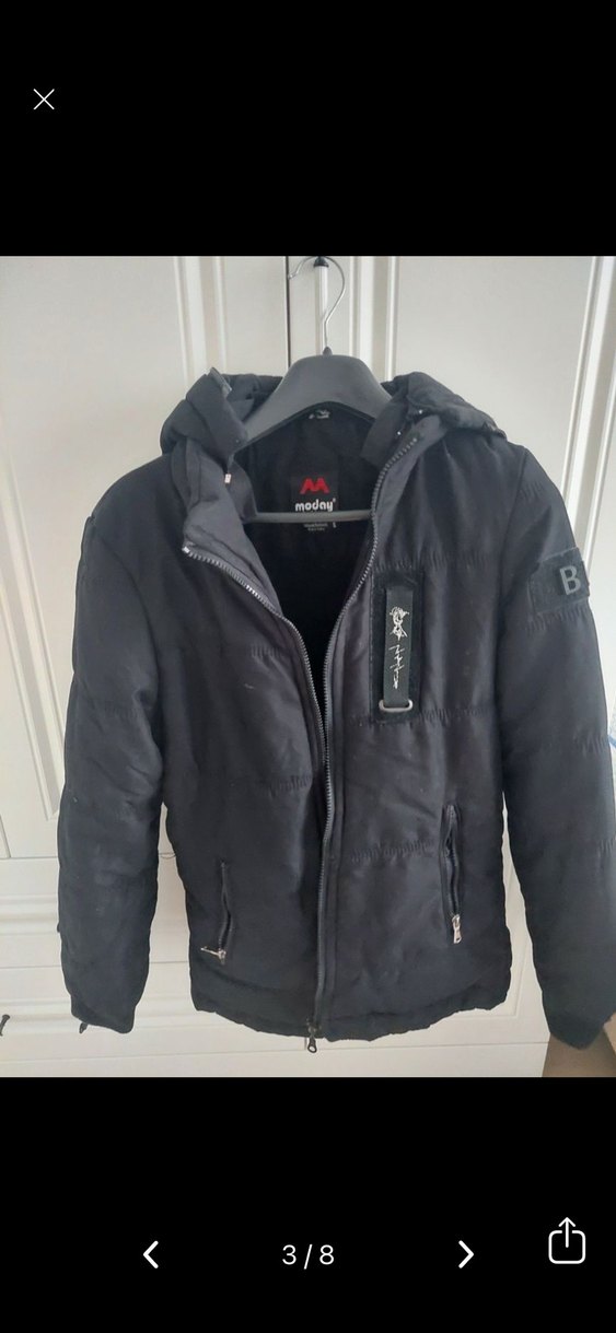 Erkem siyah mont, kapüşonlu, uzun kollu ve fermuarlı ceplerle sade bir tasarıma sahiptir. Günlük kullanım için uygundur.