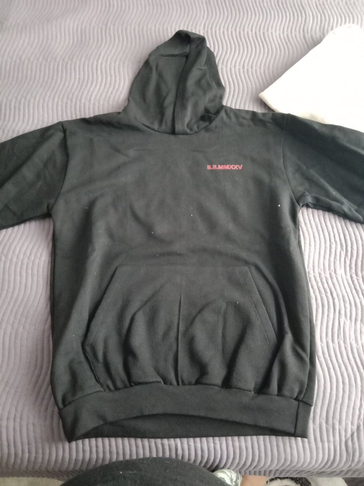 Siyah kapüşonlu, uzun kollu, salaş kesim sweatshirt. Yumuşak ve sıcak kumaştan, ön cepli ve sade tasarımlı, günlük rahatlık için ideal.