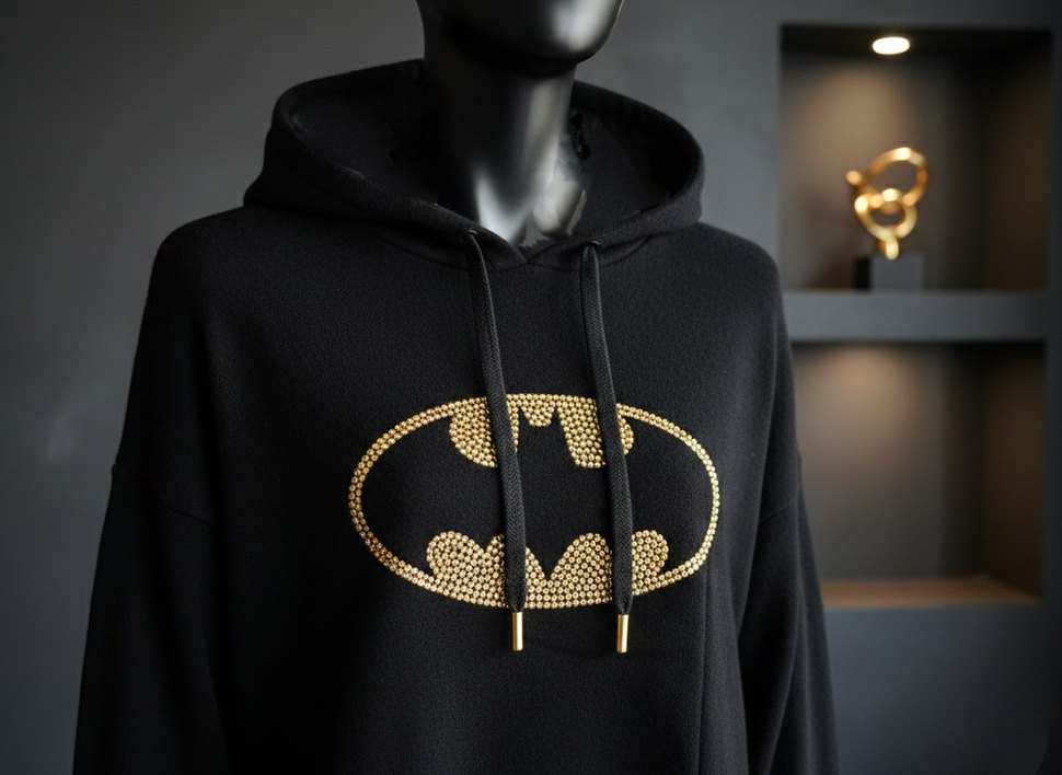 Kadın siyah kapüşonlu sweatshirt, Batman logosu ile loose fit ve uzun kolludur günlük kullanıma uygundur.