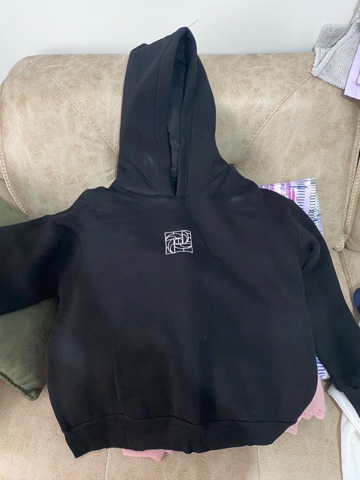 Uzun kollu, kapüşonlu ve bol kesim siyah sweatshirt, önünde baskılı desen bulunur. Yumuşak ve sıcak kumaştan üretilmiştir, günlük kullanım için rahat ve şık bir tercihtir.