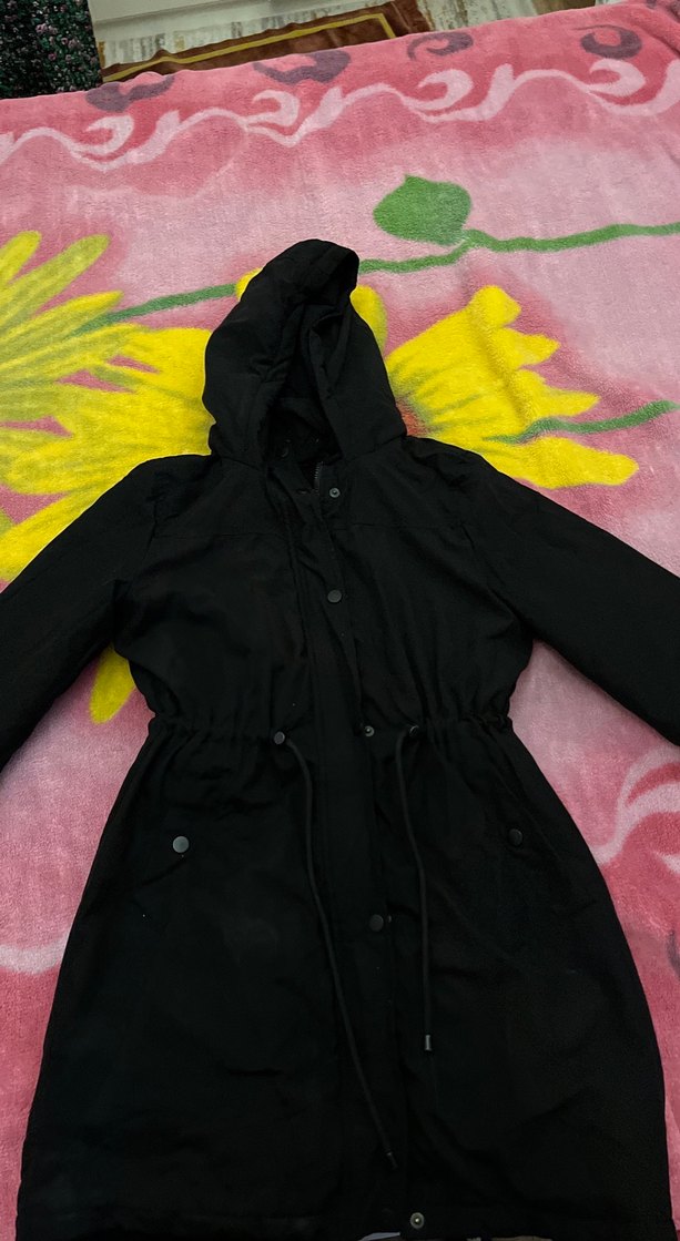 Kadın Siyah Kapüşonlu Uzun Ceket
