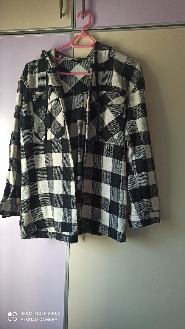 siyah kareli, pamuklu kumaştan, uzun kollu, düğmeli ve yakalı salaş kadın gömleği. Rahat ve günlük kullanım için uygundur.