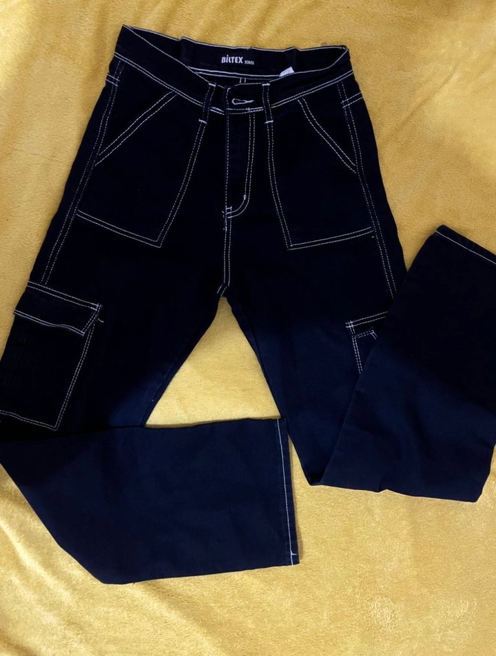 Siyah beyaz dikiş detaylı kargo pantalon kusuru yoktur yenidir