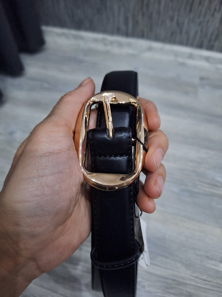 Kadın Siyah Kemer Altın Tokalı