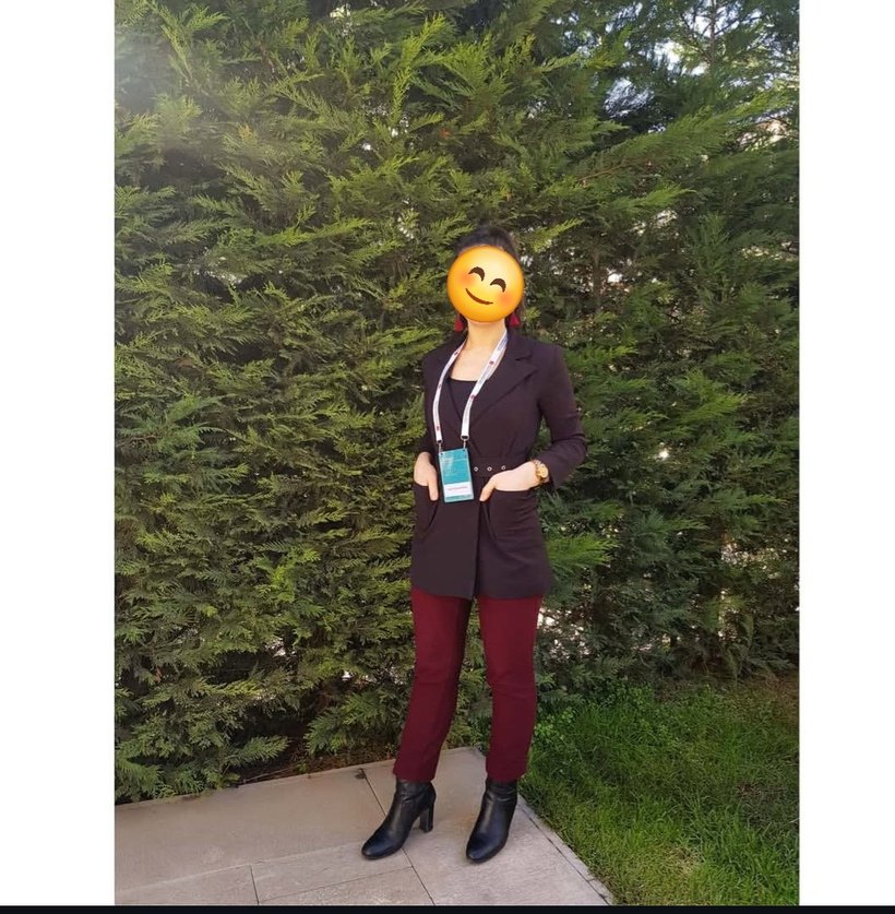 Katlanma yerinde minik bir dikiş yaptım, kruvaze olduğu için kemerle kapanınca görünmüyor. Kalçayı kapatıyor.Boy 75 cm