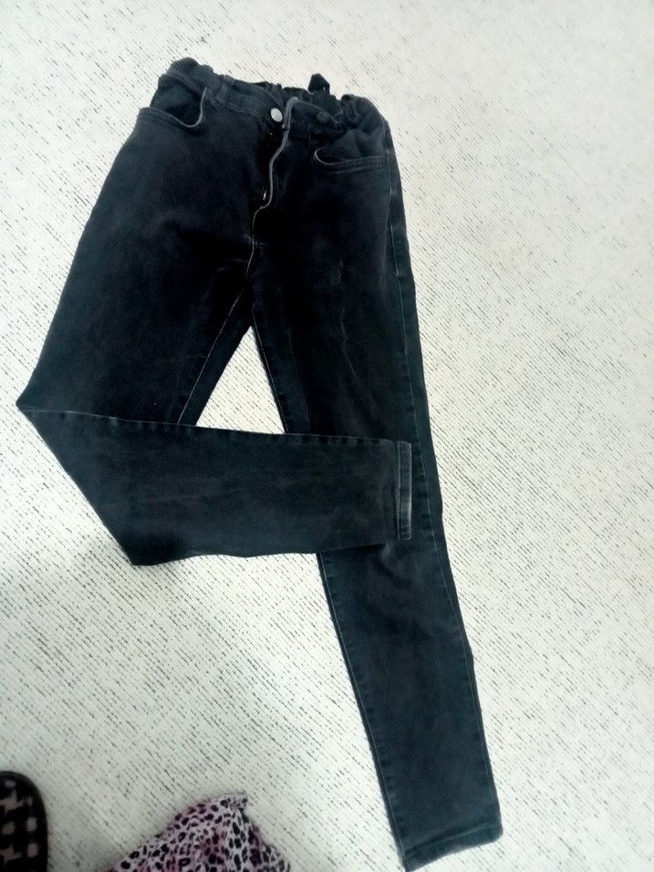 Siyah denimden, kemerli ve düz desenli kadın jean. Normal boyda ve regular fit kesim, günlük sokak stili için uygundur. erkek