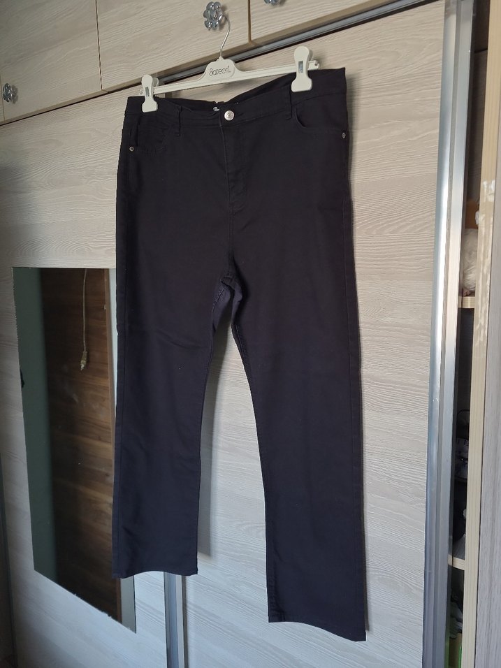 Siyah renkli, kemerli denim kumaştan yapılmış, normal boy ve regular fit kadın pantolonu. Günlük kullanıma uygundur.