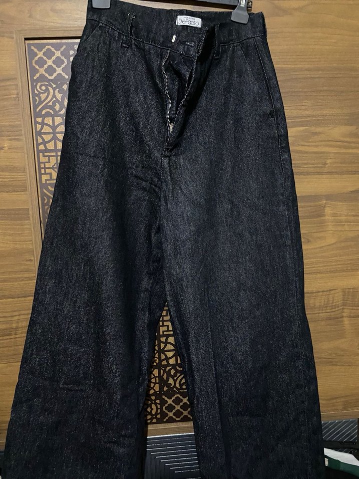 Kadınlar için siyah kemerli denim pantolon, normal kesim ve uzun boy. Günlük kullanıma uygun, sade ve rahat bir model.