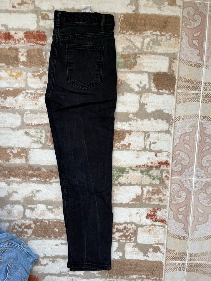 Kadın siyah denim pantolon, kemerli ve midi boyda, günlük kullanıma uygun, rahat bir kesime sahip.