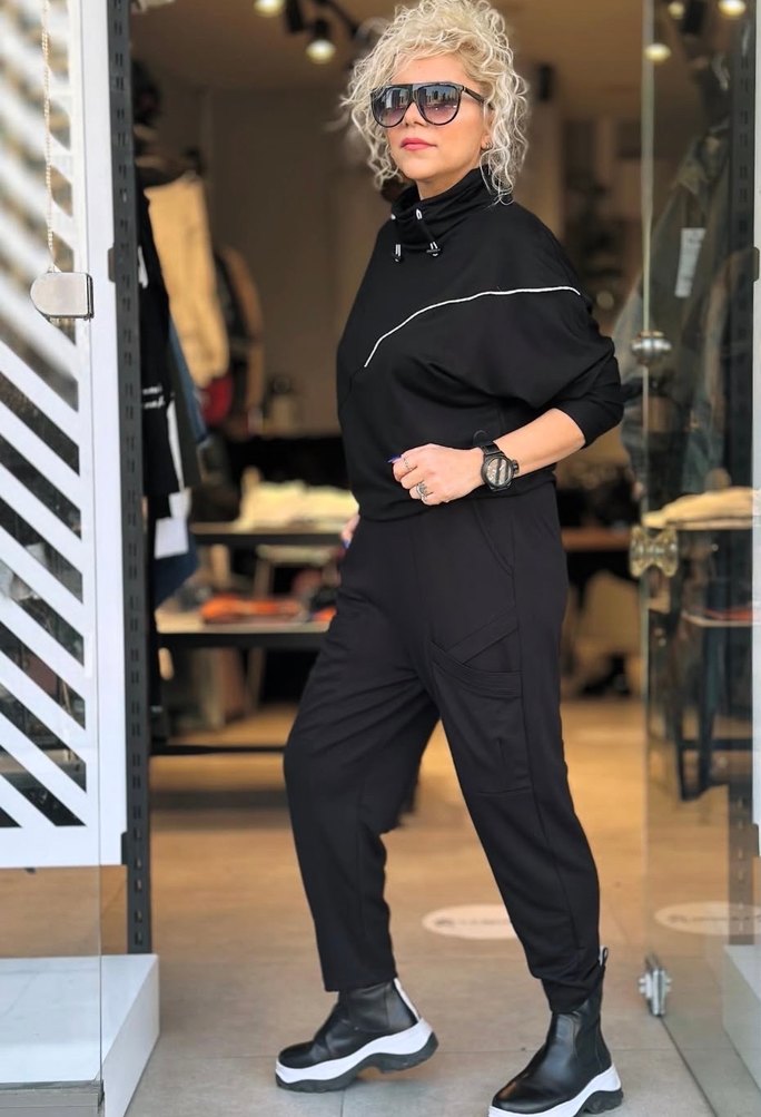Kadın Siyah Kemerli Eşofman oversays siyah