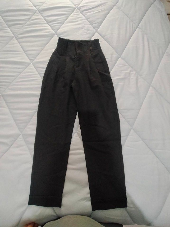 Kadınlar için siyah keten pantolon, normal boy ve kemerli tasarım. Minimalist, trend ve rahat günlük kullanım için uygundur.