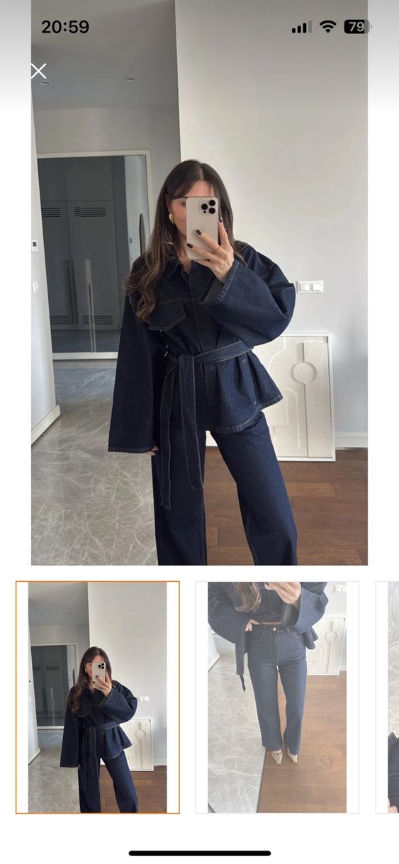 Kadın siyah kot ceket, regular fit ve midi boydadır. Notlu yaka, uzun kollu ve kemerli tasarımıyla rahat ve şık bir görünüm sunar. Günlük kullanım için uygundur.